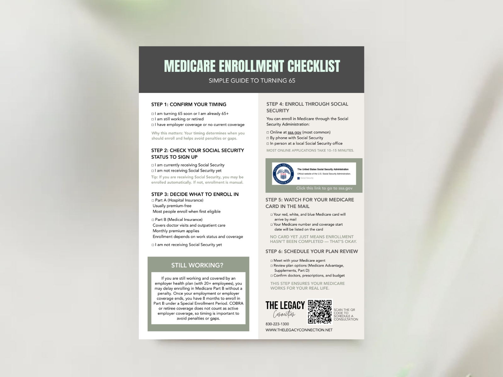 This free Medicare Enrollment Checklist breaks down the key steps to enrolling in Medicare in a clear, simple way, so you know what to do, when to do it, and what to watch for. It walks you through timing your enrollment, understanding how Social Security affects sign-up, deciding which parts of Medicare apply to you, and what to expect after you enroll.